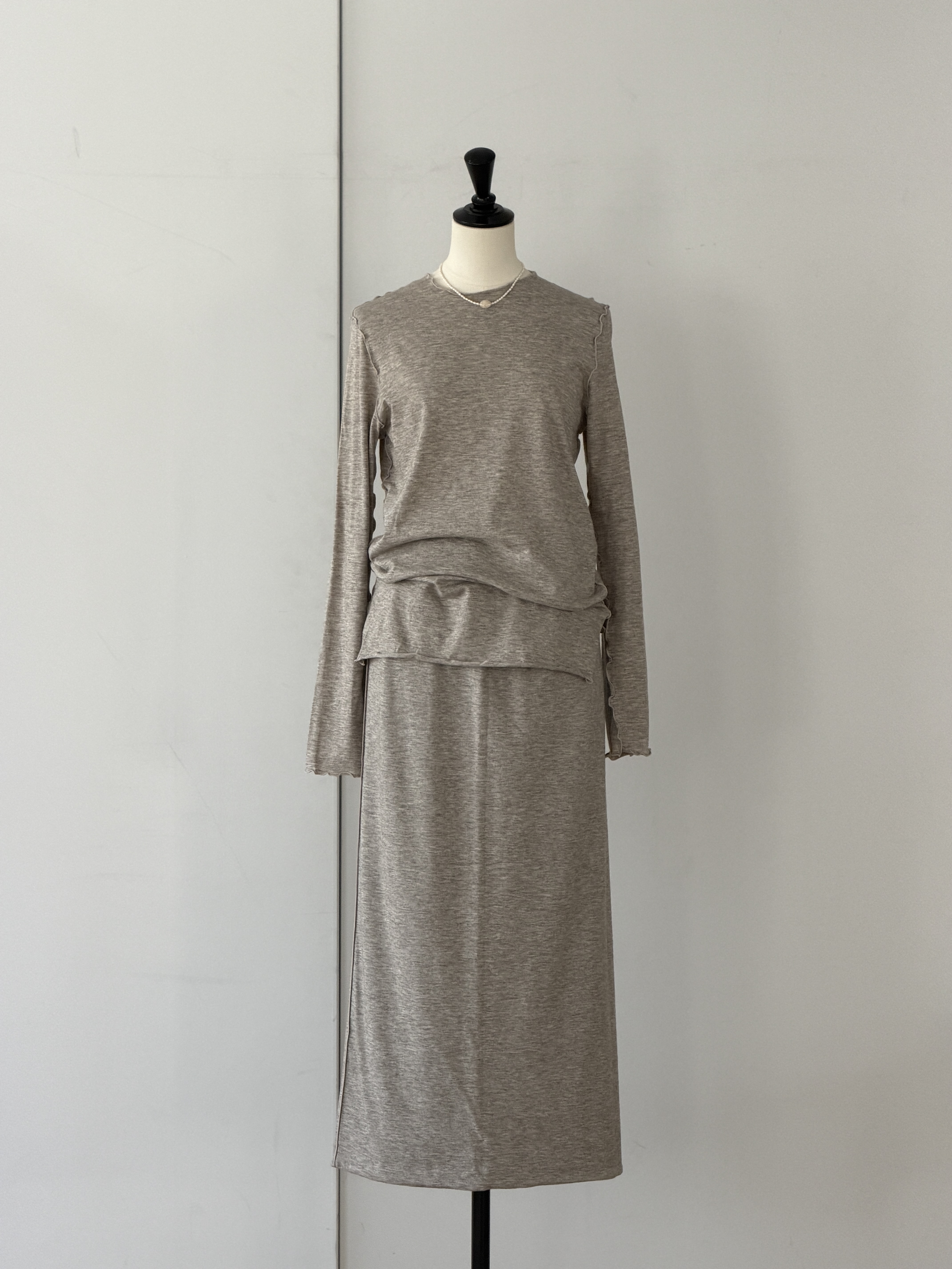 インナーには、ヤクコットンジャージーのレイヤードトップスを。