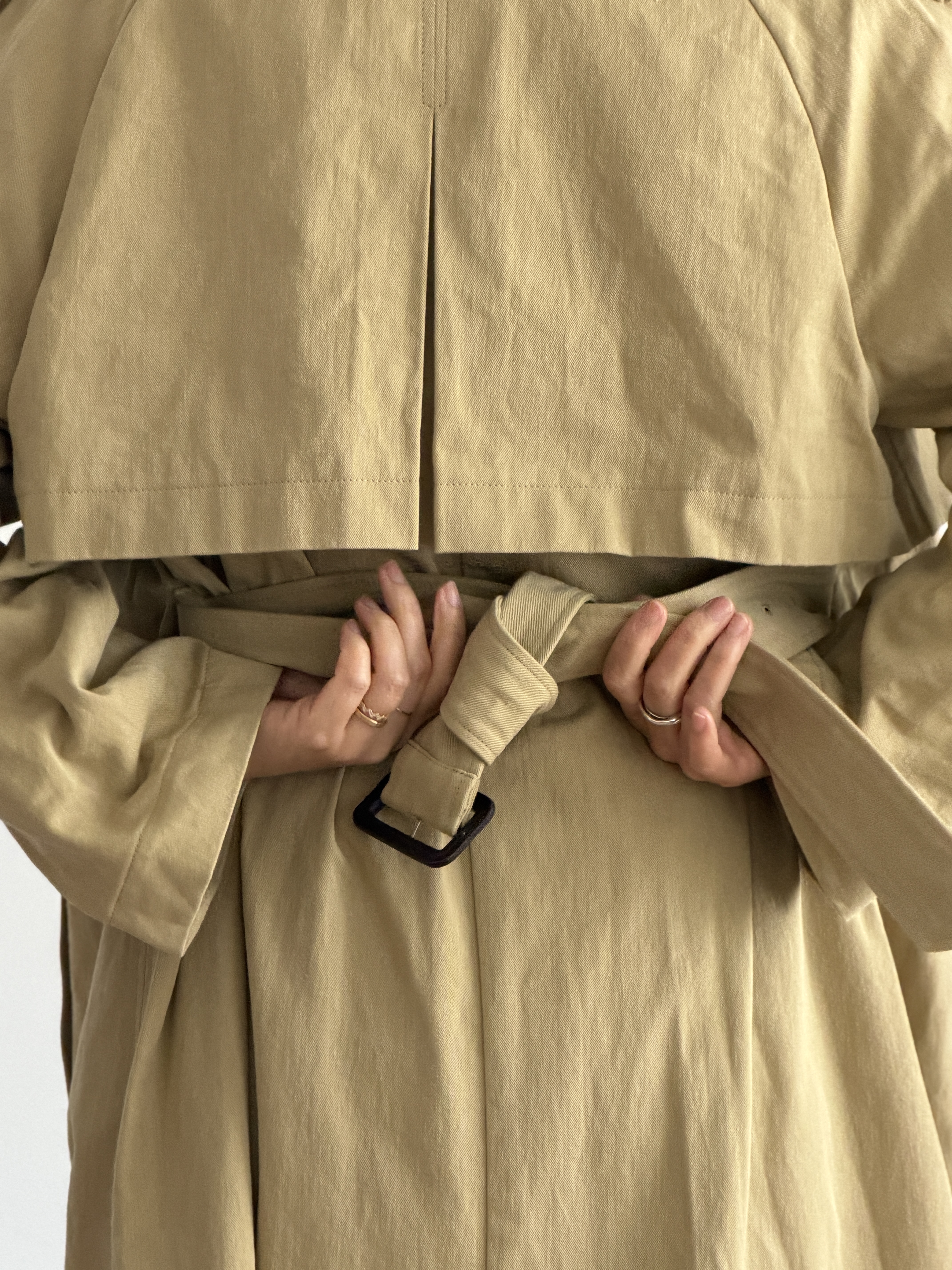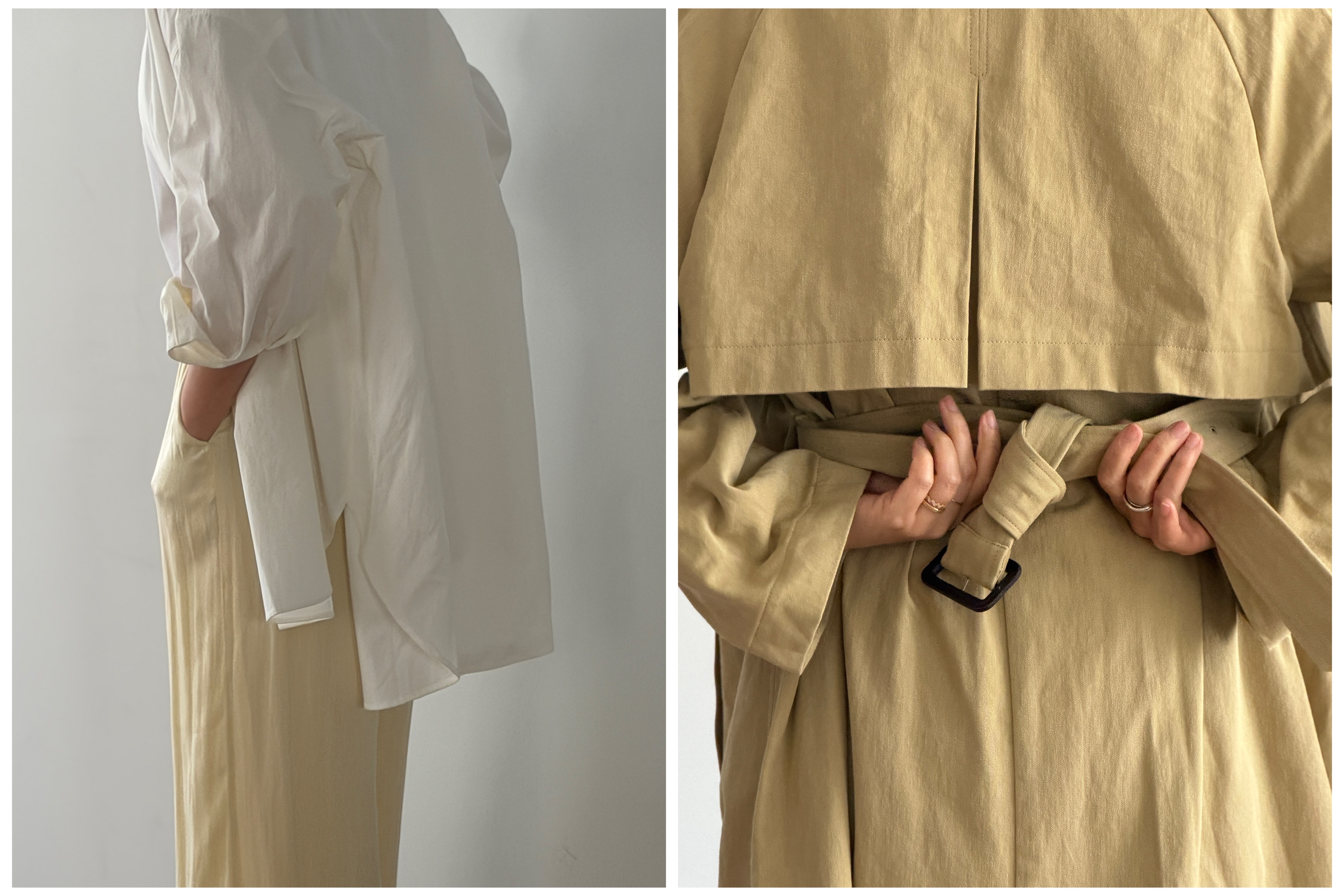 軽やかなレイヤードを包み込む、タイムレスなトレンチ