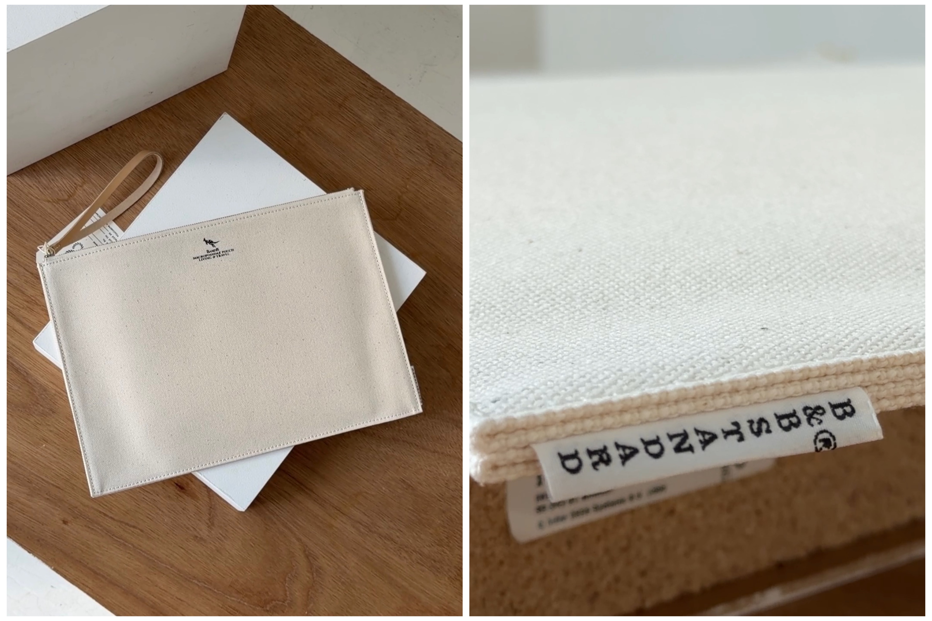 張りのあるコットン素材を使用したMACROPODIDAE POUCH。ポーチの張り合わせや縫製など細部までこだわりぬいた一点です。用途に合わせてサイズやカラーを選べるのも嬉しいポイント。