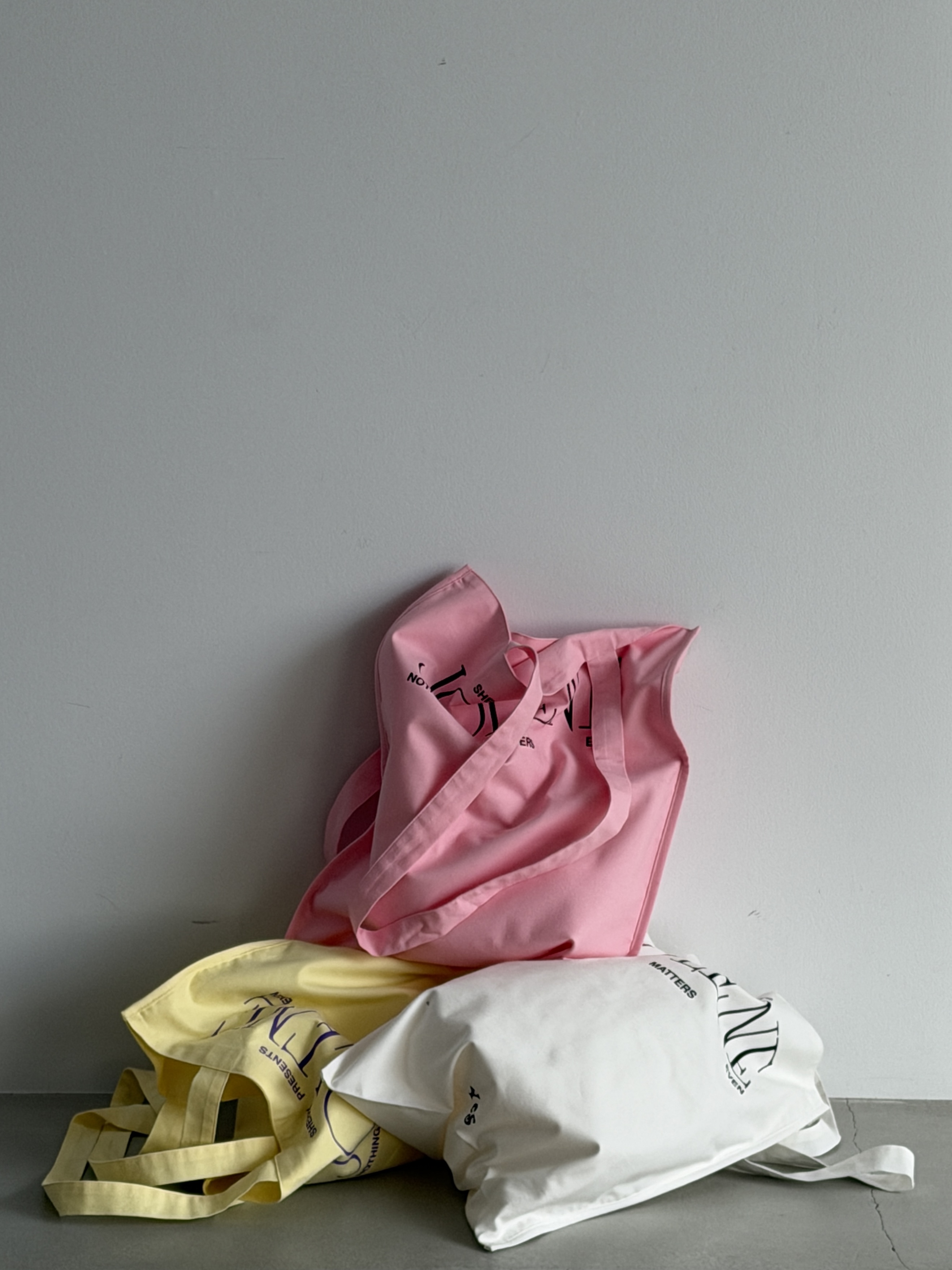 フロントのメッセージを最小限の構成でまとめた、ミニマルなトートバッグ。2枚仕立てのしっかりとしたボディは、荷物を入れても型崩れしにくく、美しいシルエットを保ちます。肩掛け・手持ちのどちらにも使いやすいハンドル幅で、日常使いにちょうどいい存在。