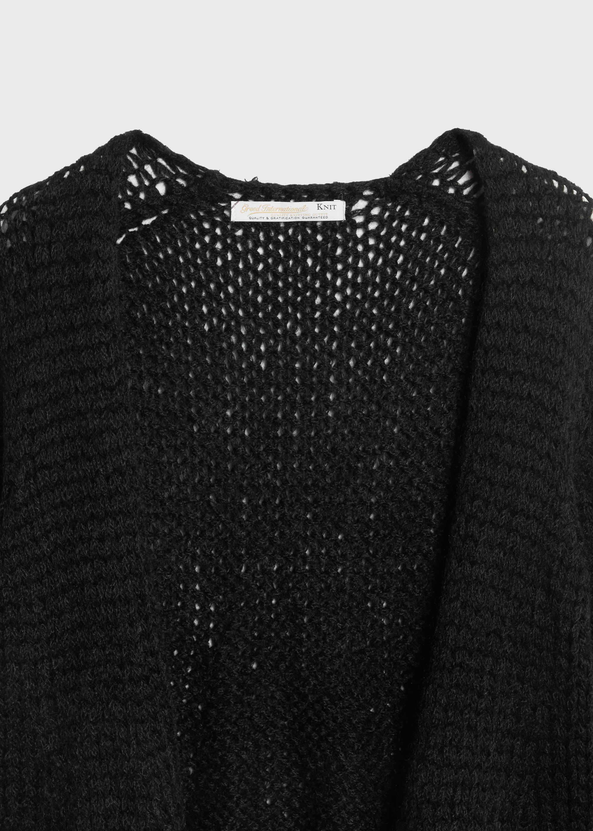 リリーヤーン糸の形状を最大限に生かし、着用時の着心地とシルエットがキレイにでるようバランスを考えたとても綺麗なフレアーラインの大人のリリアンカーディガンです。上品な光沢と、毛足の長いソフトな膨らみが特徴の高級なキッドモヘヤを55%使用しております。リリヤンならではの優しい丸みをおびた糸の可愛らしい見た目も魅力の一つです。デザインの仕様上ループの大きさにばらつきが生じる場合がございます。引っ掛かりには十分ご注意下さい。
