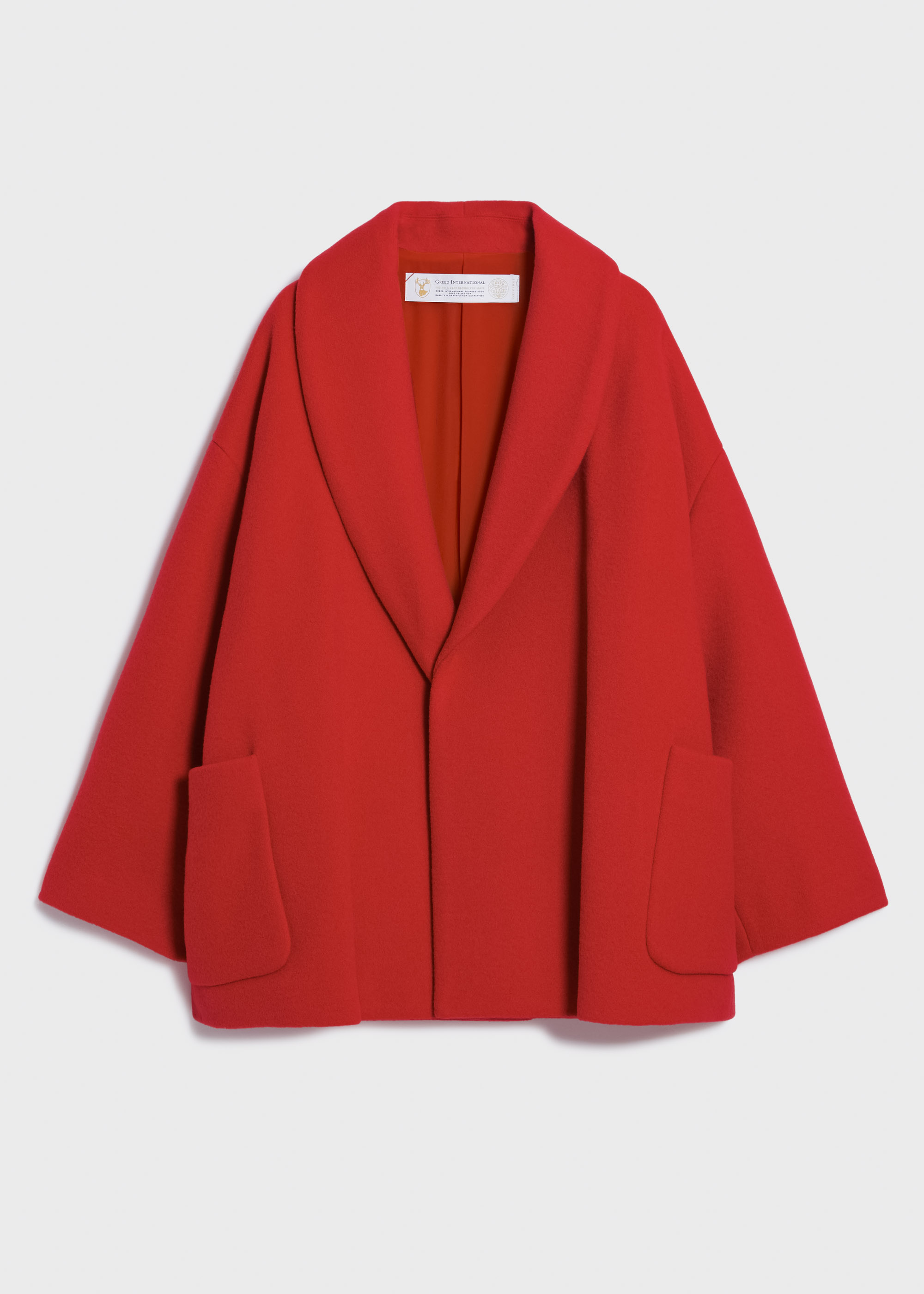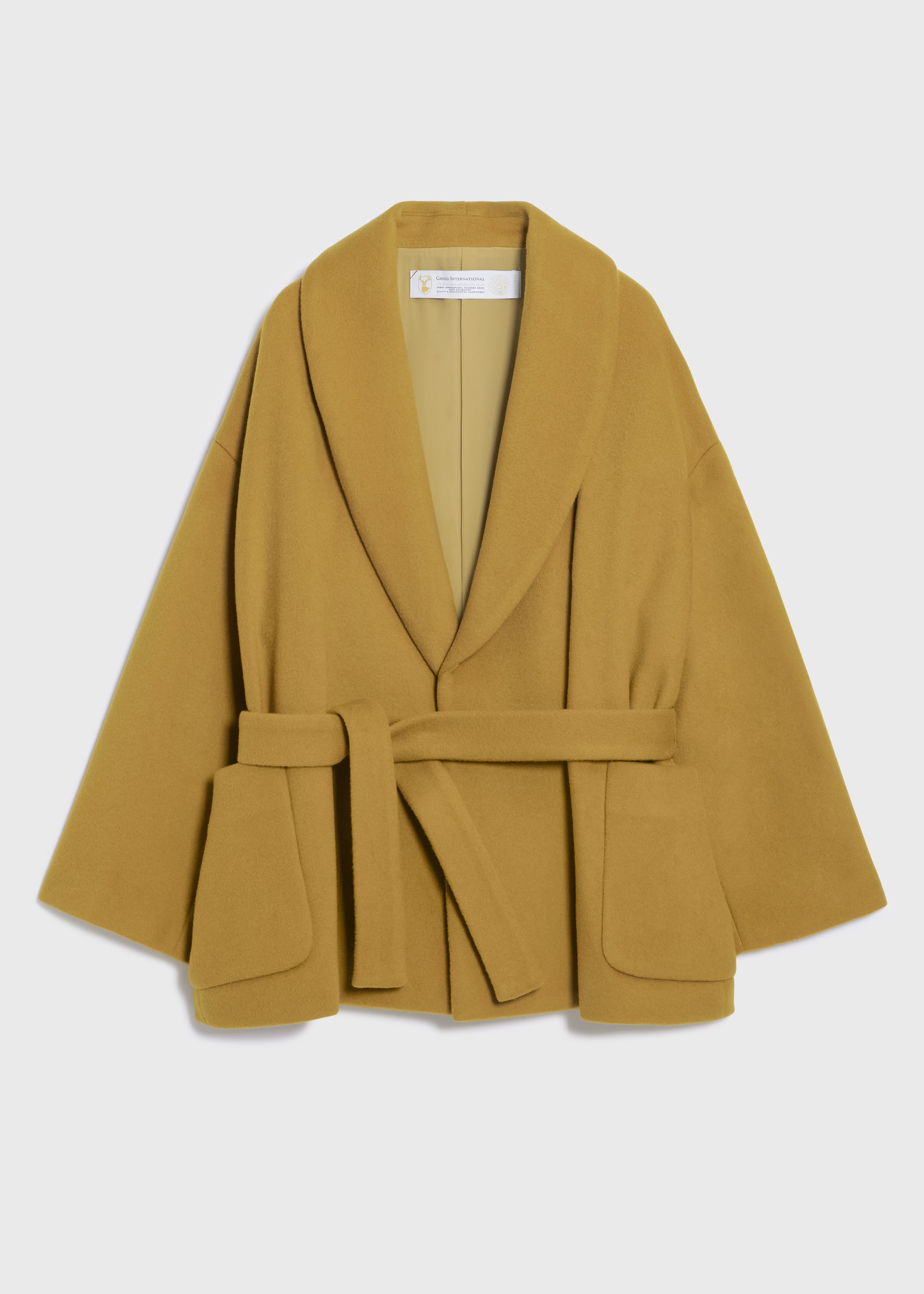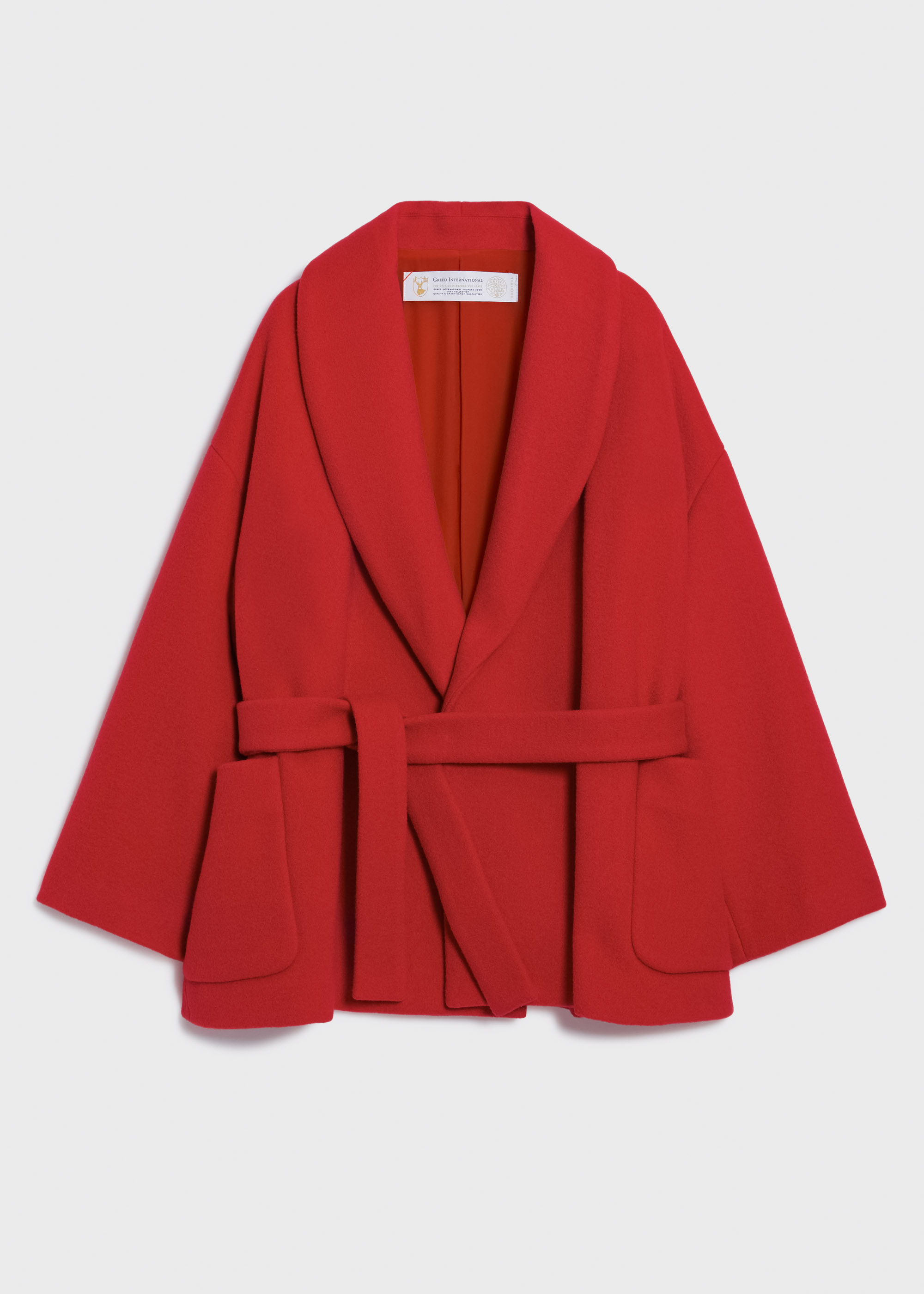 とてもゆったりとしたガウンタイプのコートです。ウエストの紐を結んで着用しても、ガウンのように着用してもバランスのとても良いヒップ丈のコートです。ニュージーランドキウイーラムはメリノウールで、ニュージーランドの標高1000m以上の牧場で飼育されています。 特有の柔らかい風合いを持ち、クリンプの深さ・繊維の密度の膨らみ・繊維長とファイバーの強度が特徴です。 積雪などの影響により平地の牧場の羊毛とは比較にならないくらいの極めて優れた白度を有しています。