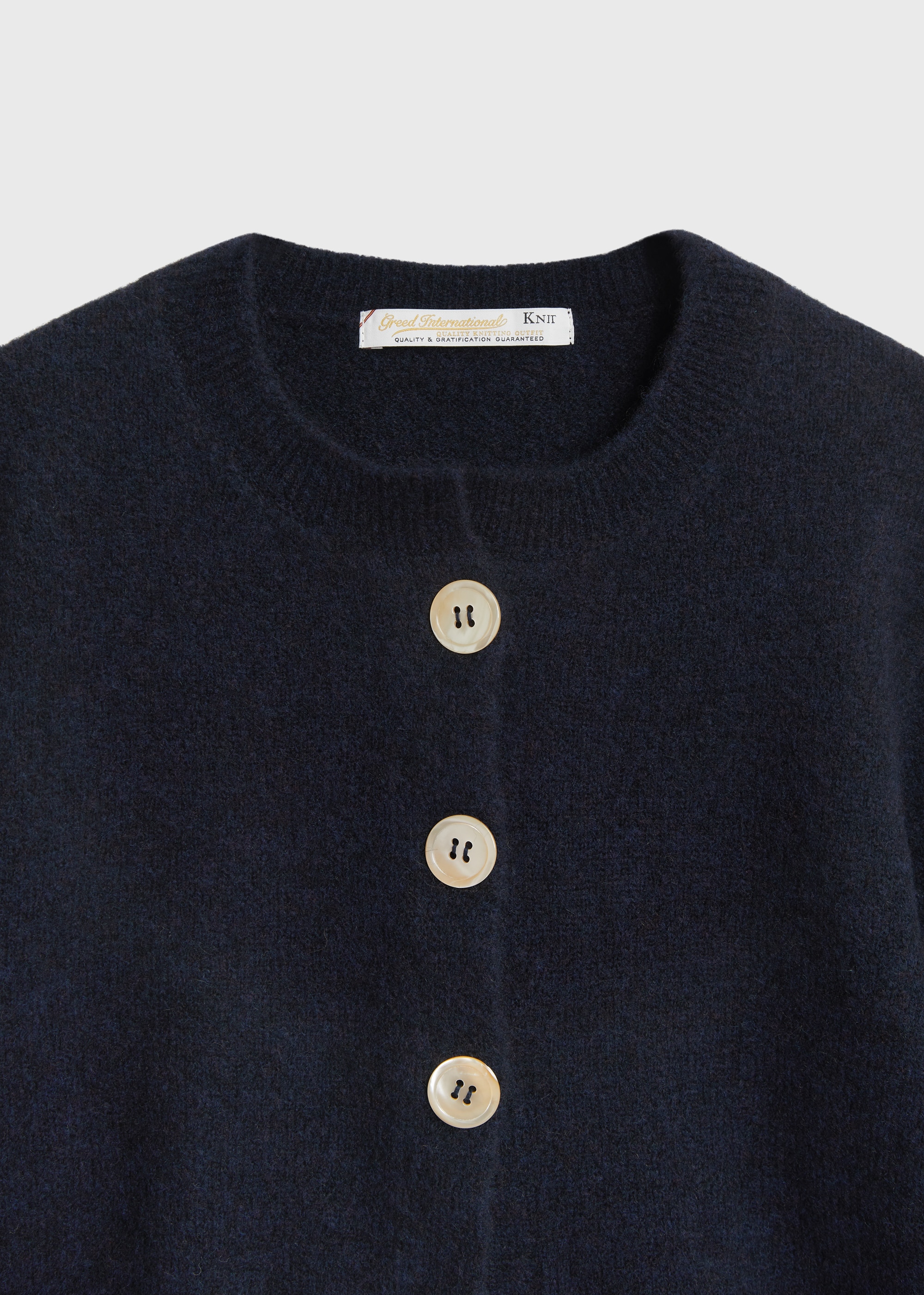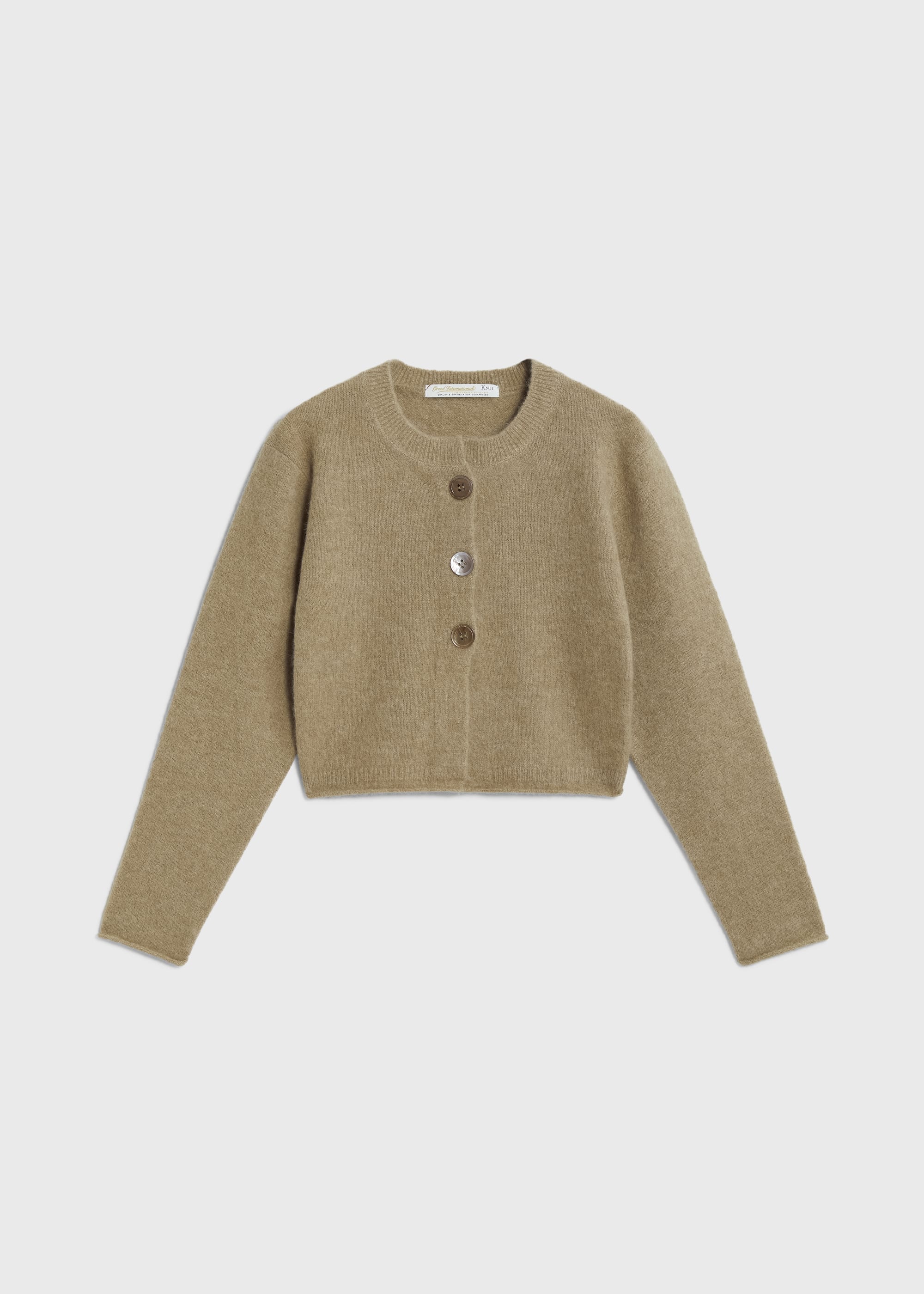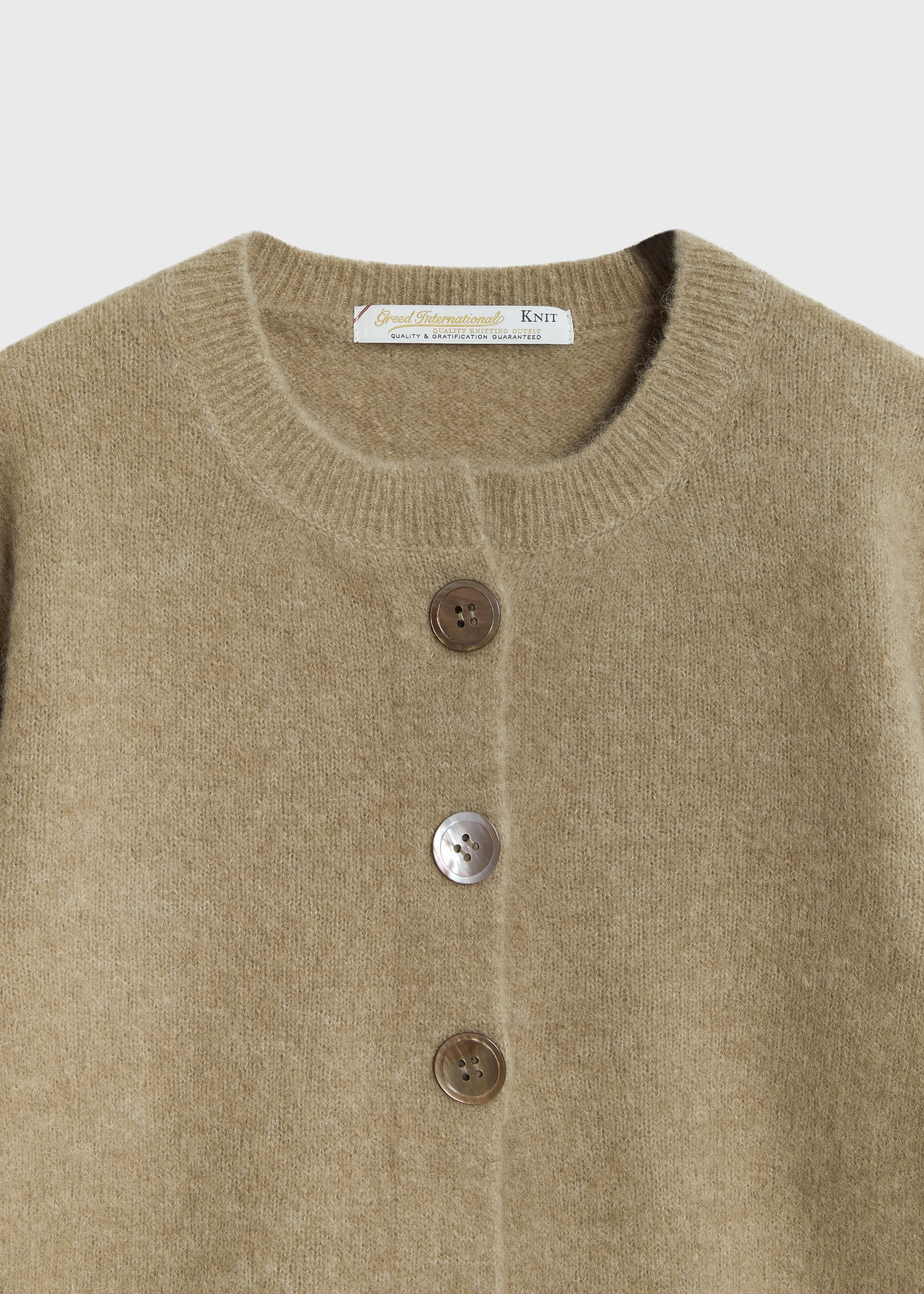 ベビーアルパカ混の起毛ループ糸を使用した、軽やかなショート丈カーディガン。