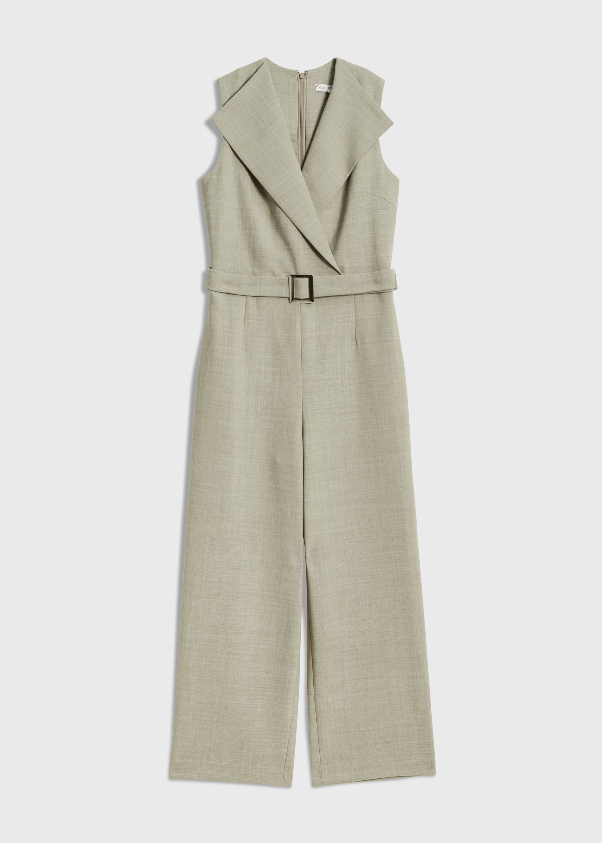 一枚でスタイリングが完成する存在感がありながら、素材のしなやかさとストレッチ性で、長時間の着用もストレスなく快適。オケージョンにもデイリーにも対応できる、現代的なジャンプスーツです。