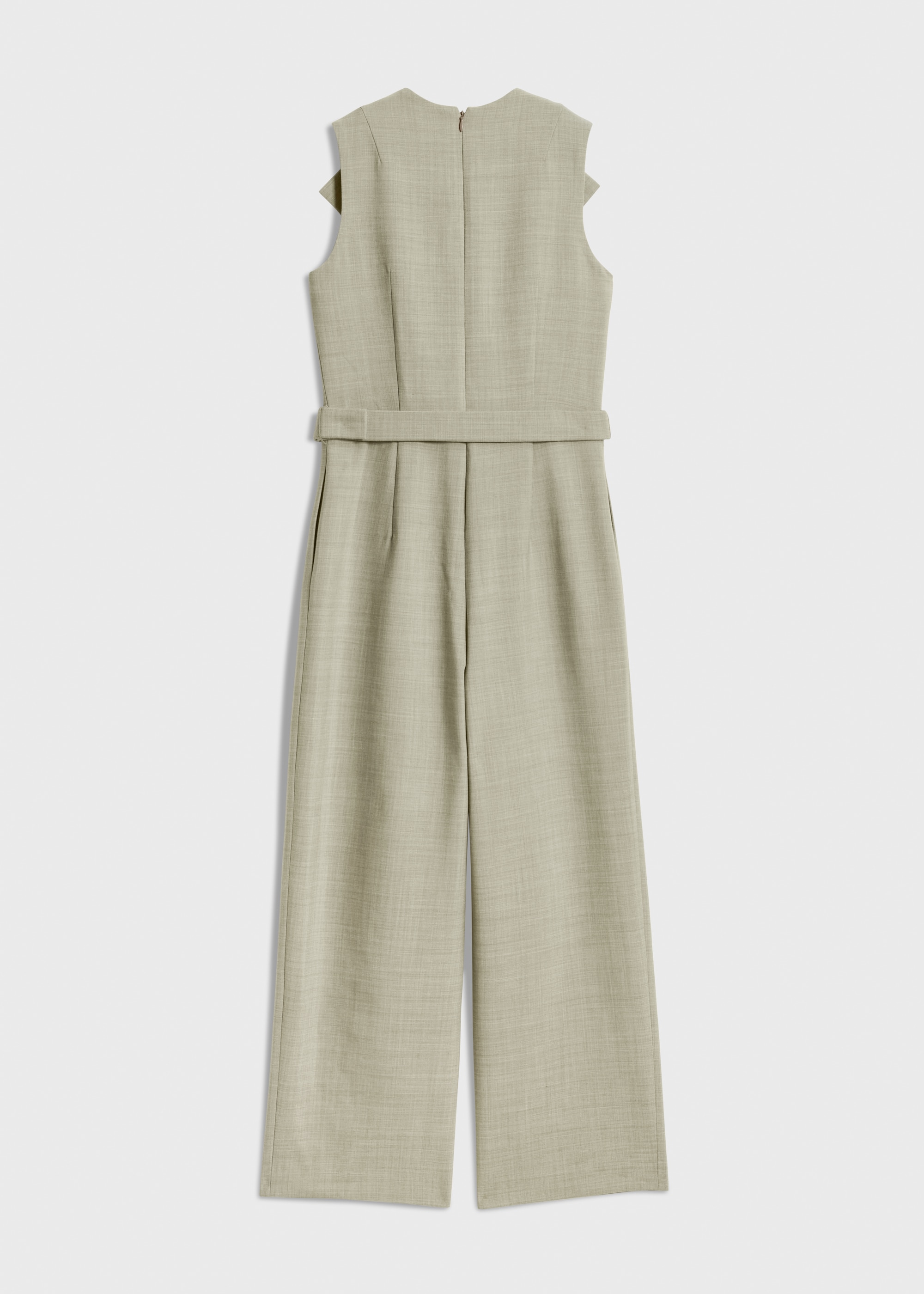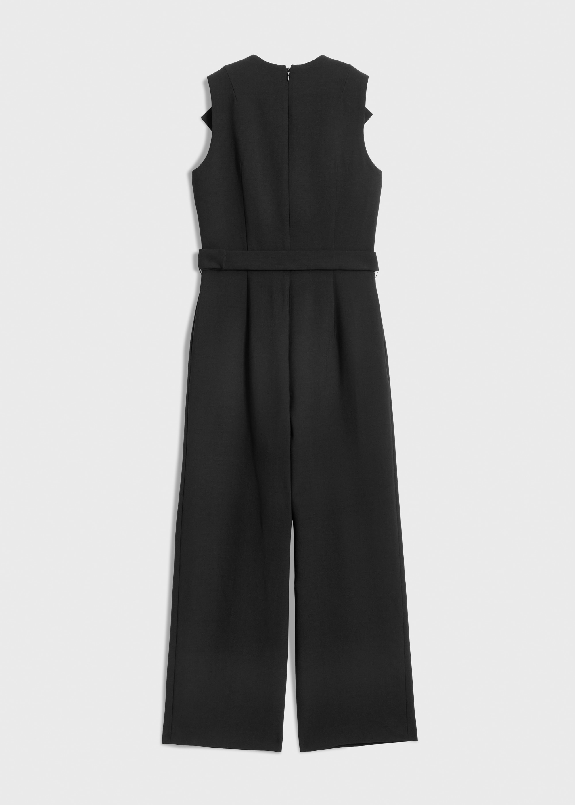 洗練されたディテールと着心地の良さを兼ね備えた、ノースリーブのジャンプスーツ。素材には、クリアな表面感と自然な落ち感、縦横ストレッチ性を持つ「S/80 サイロTW 2way